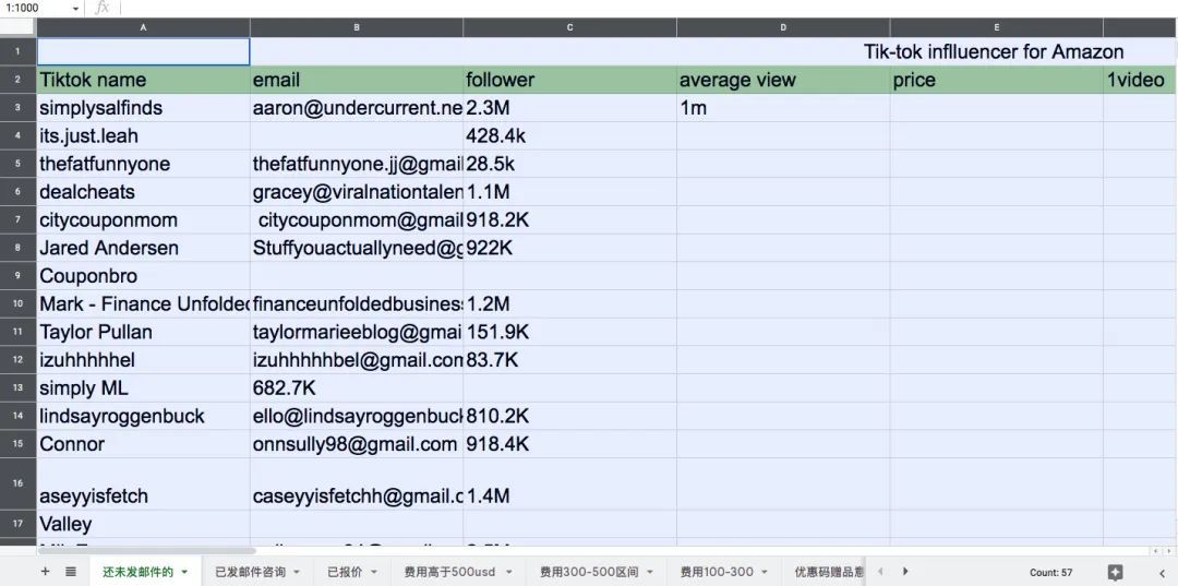 既然自己没办法在tiktok 养好成为网红,还不如利用网红帮我们带货,每天抽出一个小时 进行整理,一个月你能整理到 一整年用到的网红资源,并且每个资源进行分类 ,按报价进行分类,然后按地区进行分类,每个网红的粉丝画像不一样。