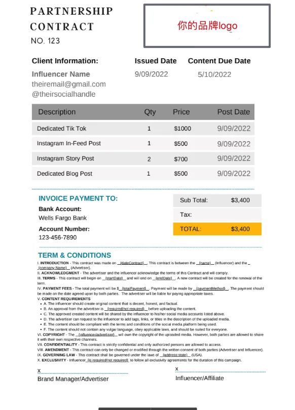 如果是大网红提前预支费用的你肯定要正式一点,有些大网红可能拖时间或者不能按时出视频,有些甚至直接消失 都有可能,所以我们约束他人的同时要保护自己的权益,我建议起草一个简单的协议,这样网红也不敢消失。