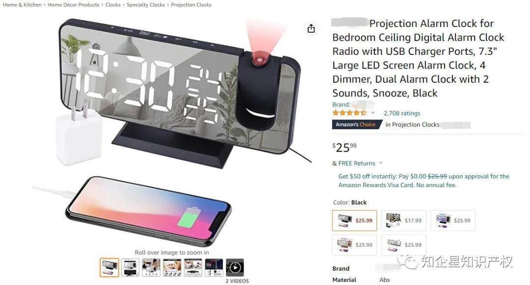 杜绝专利侵权风险,为您的产品保驾护航!今天分享一款投影闹钟,它是美亚站的Amazon'sChoice,售价25.99美金,留评2715颗星。