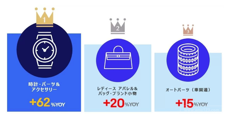 eBay123获悉,近日eBay日本站公布了2022年第二季度(10月至12月)的热销商品趋势。受日元贬值的影响,高价商品销量增加,像爱马仕、香奈儿等奢侈品牌,劳力士、欧米茄等高端手表,以及口袋妖怪卡等收藏品都实现了强劲的销售增长。