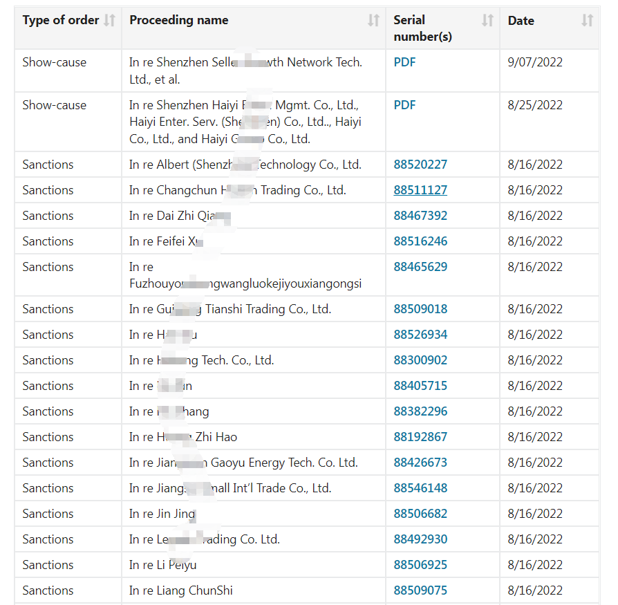 三、美国商标局准备对这些公司采取的制裁行为