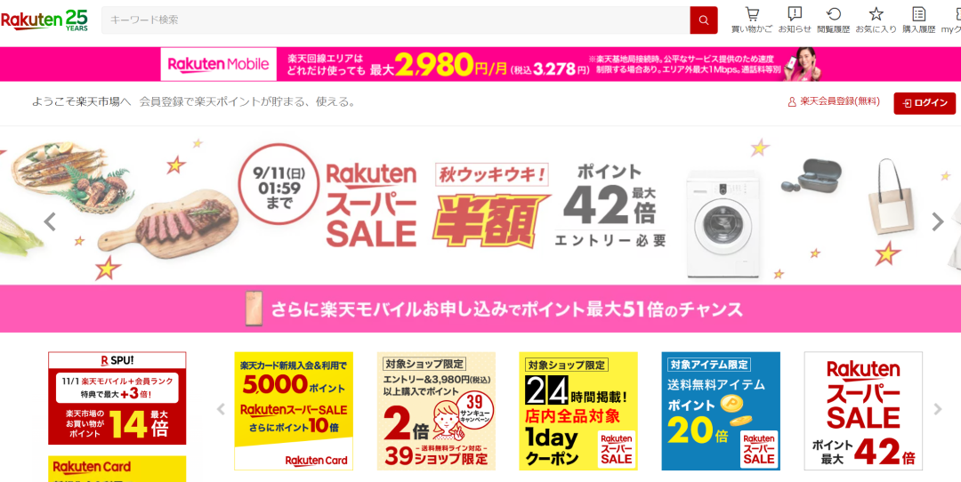 万众瞩目的日本乐天第三季度Super Sale大促活动已经于昨晚开启,本次促销活动的时间会延续到9月11日凌晨01:59。也就是差不多刚好一个礼拜左右。