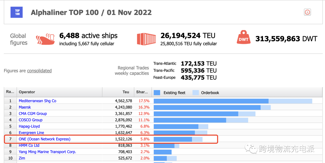 据充电文化传媒最新消息获悉,日本班轮巨头 Ocean Network Express (ONE) 目前是全球第七大海运承运商,其最近一个季度报告了 55 亿美元的巨额利润,这主要得益于运费上涨抵消了该季度后两个月需求暴跌的影响。