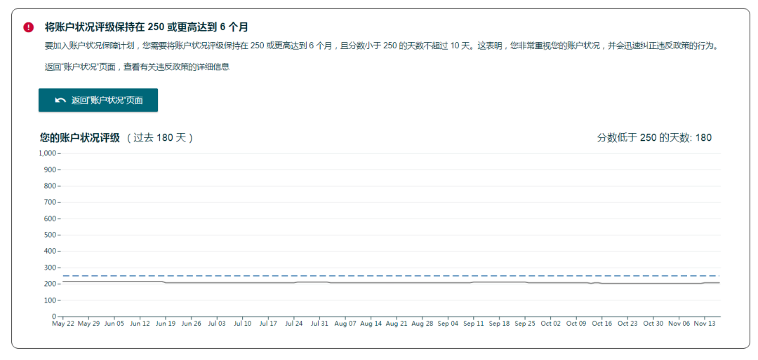 关于这项计划,亚马逊在发给卖家的邮件中也提到过,这是为持续获得高账户健康评级(AHR)的卖家提供的一项新福利。想要享受这项权益的卖家,则需要满足至少在6个月内保持250分或者更高的AHR分数(AHR下降到250分以下的天数不超过10天),并有有效的紧急联系电话存档。