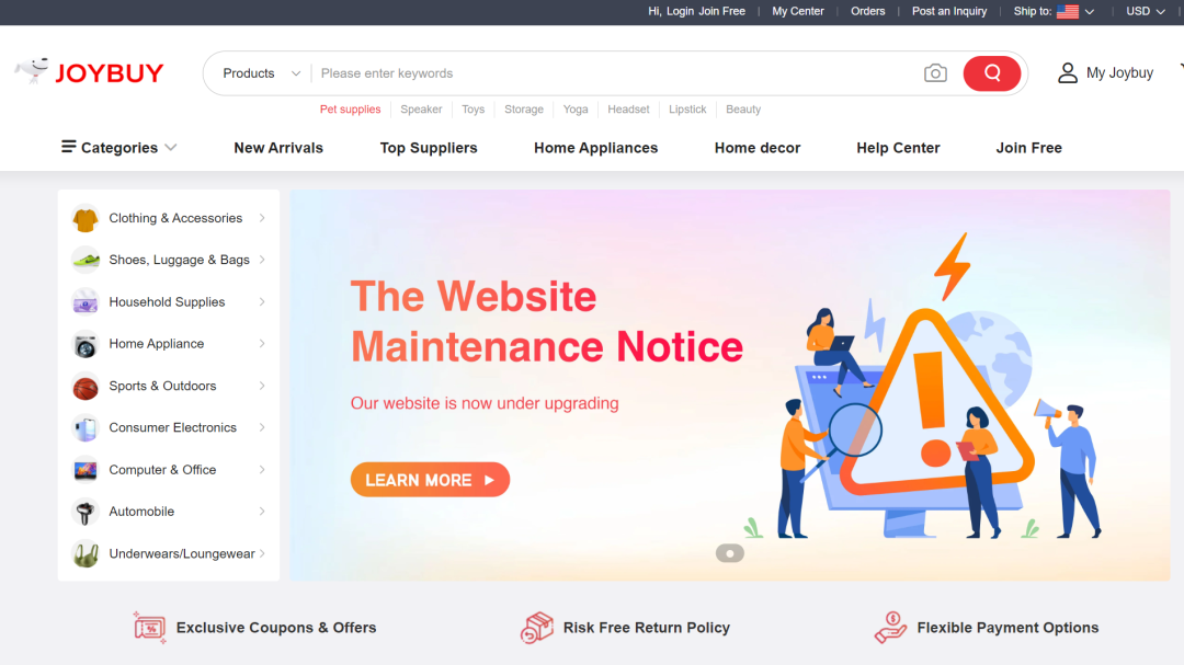 除此之外,由于战略发展的需要,JOYBUY表示将于2021年12月9日停止英文站www.joybuy.com和俄文站www.jd.ru现有业务的运营,并将依据与商家的协议终止和商家在JOYBUY网站的合作。