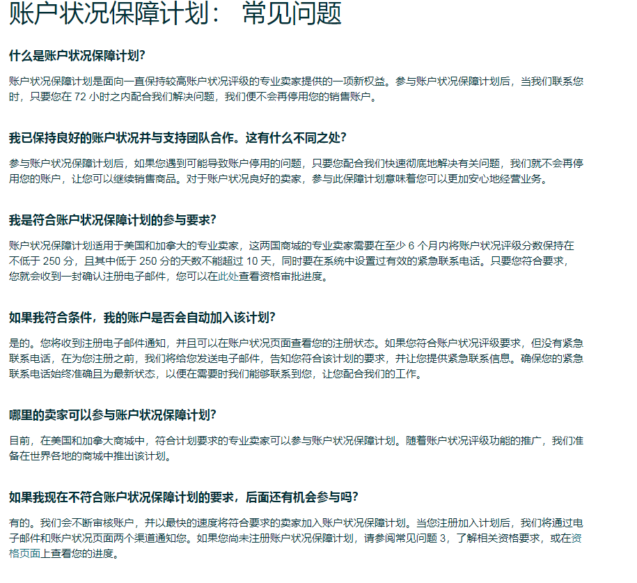 加入该计划后,卖家只要协同亚马逊解决所有问题,账户就不会被停用。