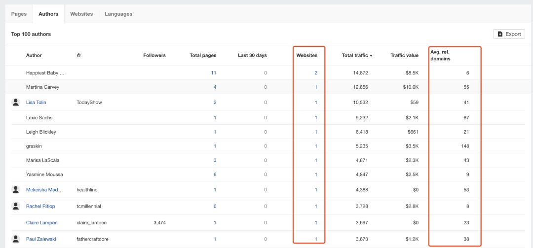 至于为何这么做,如果大家手上有ahrefs的可以去看看"content explorer",其中就有一个author的选项,点进去你就清楚了;