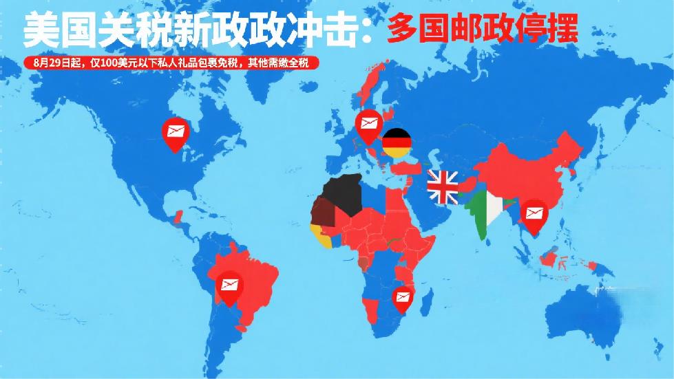 从 8 月 29 日起,美国将暂停对价值 800 美元及以下的进口包裹给予免税待遇,届时小额包裹需缴纳适用的所有税费。受此影响,欧洲多国邮政运营商纷纷宣布暂停寄往美国的包裹服务。法国邮政集团 8 月 25 日起暂停向美国寄送包裹(价值低于 100 欧元的私人礼品包裹除外);德国敦豪公司暂停通过邮政渠道向美国寄送商业货物和部分私人包裹,仅价值不超过 100 美元的礼品快递可继续寄送;英国皇家邮政公司 8 月 26 日起暂停向美国的寄送服务;意大利邮政公司暂停处理寄往美国的商品类包裹。此外,北欧、中东欧地区的多个国家邮政也都相继宣布暂停对美包裹寄递服务。