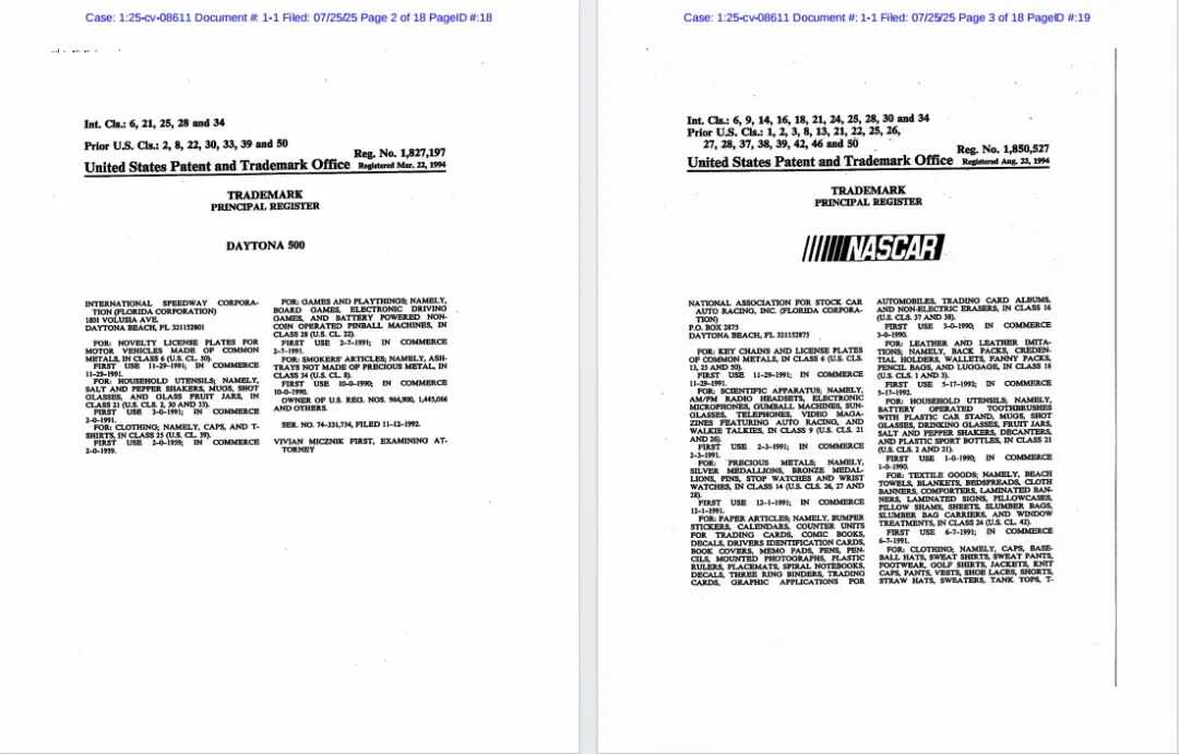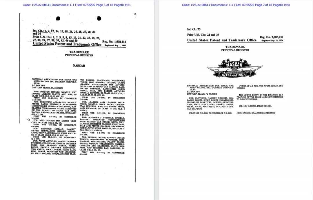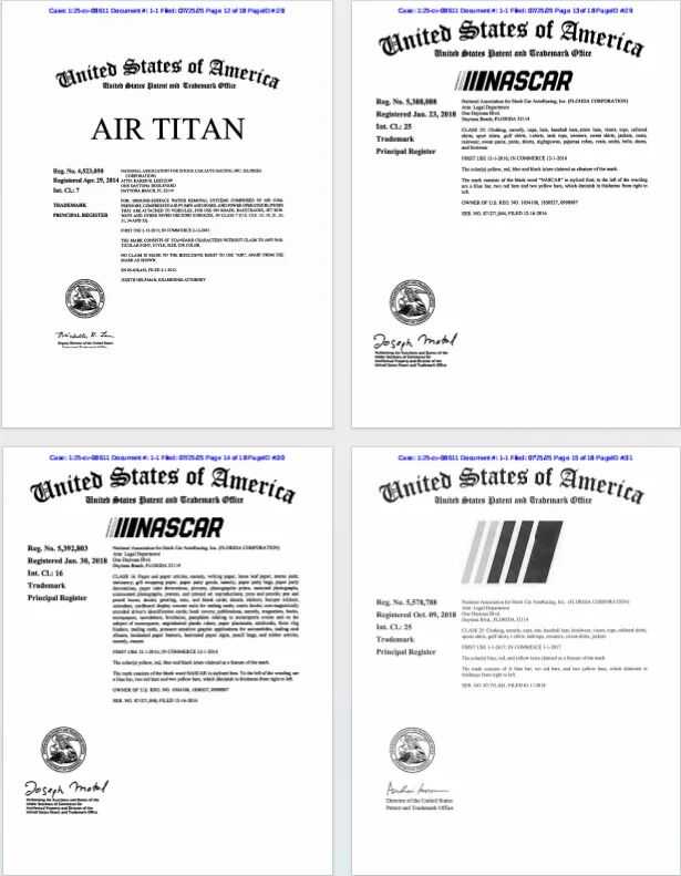 TRO案件知识产权预防侵权 & 排查避雷本期TRO案件汇总:·National Association For Stock Car Auto Racing, LLC(2025-cv-11009