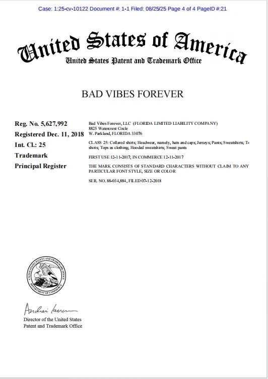 ·Bad Vibes Forever, LLC(2025-cv-11010)