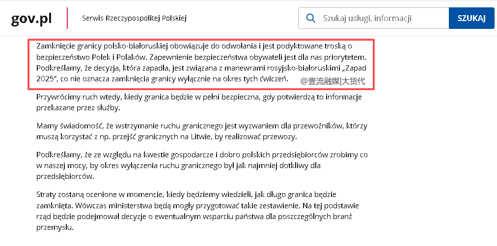 据了解,在9月16号,双俄军演结束后,一众忧心不已的货主、货代们非但没有等到通行恢复的好消息,反而迎来了一则更令人心碎的声明——波兰内政部:波兰与白俄罗斯边境将继续关闭,直至另行通知。