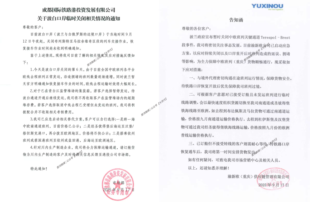 其中,也不知道是不是受到波兰内政部的这则通知影响,在16号过后的这两天里,多家物流商也是先后发布了相应的通知、情况告知函。