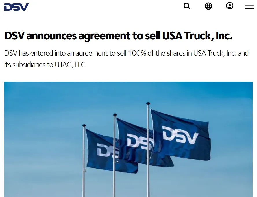 据DSV官网新闻稿,DSV已达成协议,出售其收购的DB Schenker旗下的北美公路运输公司USA Truck。具体而言,DSV将USA Truck, Inc.及其子公司的100%股份出售给美国公司UTAC, LLC。
