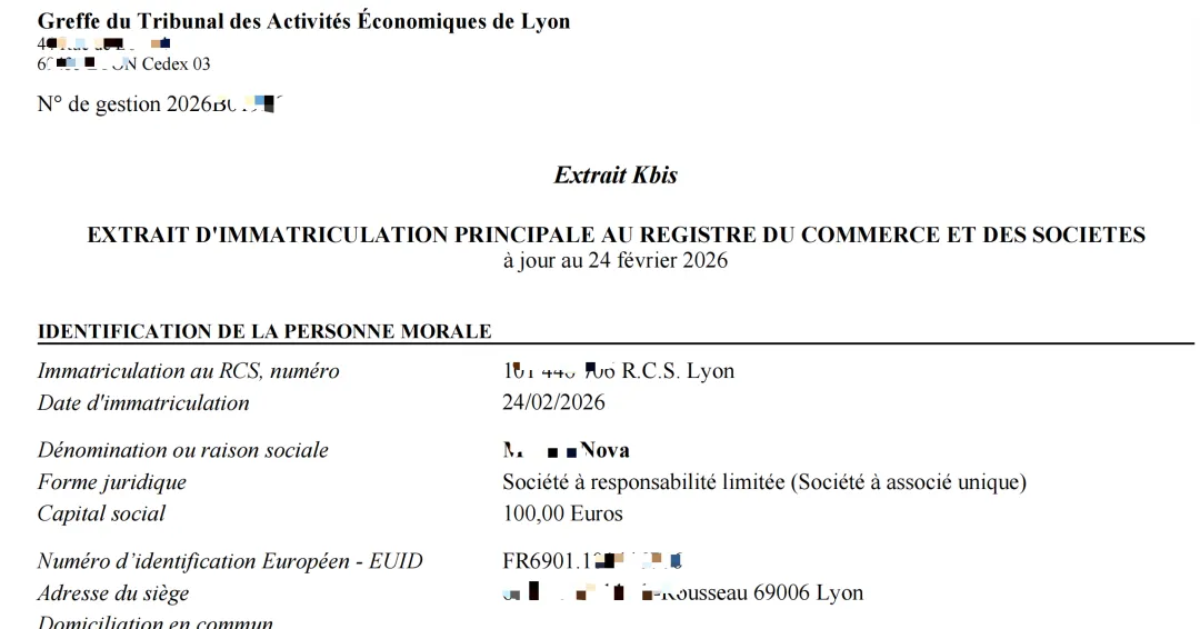 注册后获取SIREN(9位)、SIRET(14位) .........